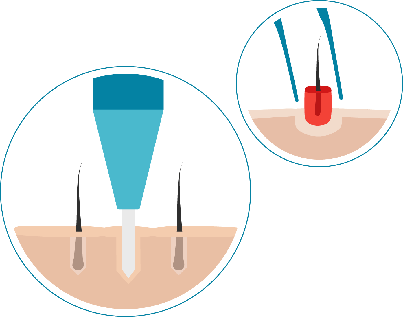 Im Vergleich dazu sind Nadeln oder Messer nicht in der Lage, so saubere Schnitte zu erzeugen. Sie verursachen Wunden, die tiefer sind und zu Blutungen führen können. Dies kann dazu führen, dass die Haare nicht gut implantiert werden oder ausgestoßen werden. Außerdem braucht die Wunde länger, um zu heilen und man muss größere Abstände zwischen den Schnitten einhalten, was sich negativ auf die Dichte auswirkt.