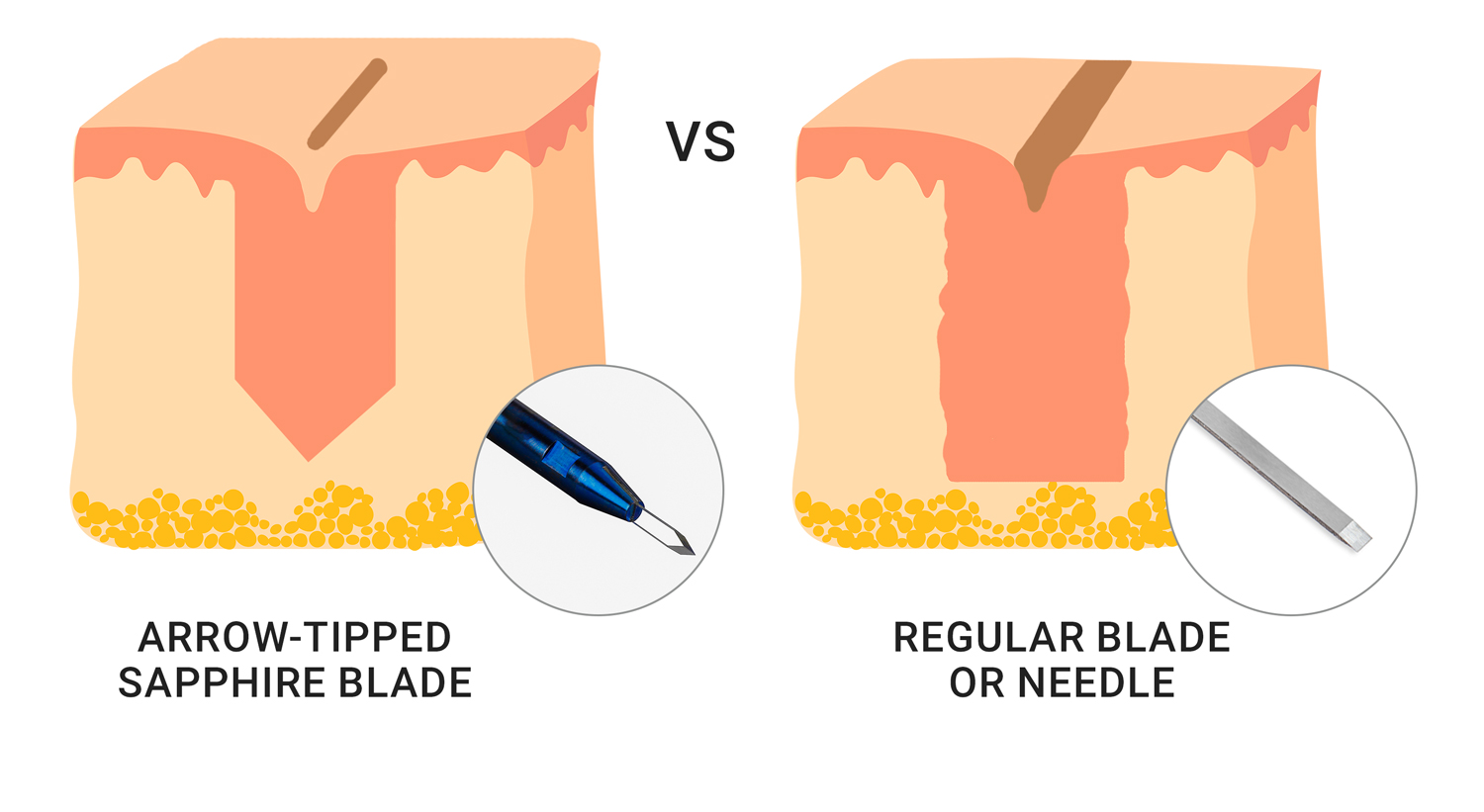 - Schärfere Klingen: Extrem scharfe Saphirklingen ermöglichen einen sauberen schmaleren Schnitt für die Graft-Implantation.